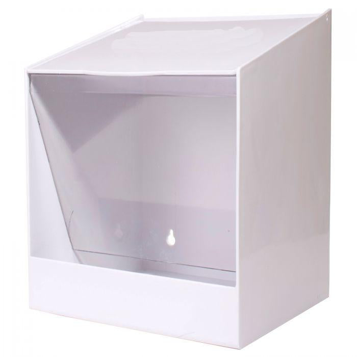 The Supertouch Multipurpose Dispenser is a hygienic, wall-mountable unit designed for controlled environments.Constructed from washable plastic, it features a white body with a clear front panel for easy content visibility.This versatile dispenser accommodates various disposable products and is suitable for wall fixing.cite