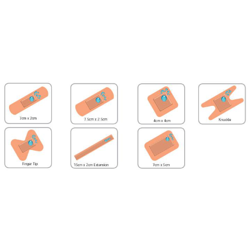 - Assorted Sizes: A variety of shapes and sizes to cater to different wound types. Packaged in boxes of 100. [Product Code: 857]