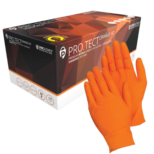 These gloves are designed for professionals who demand the highest standards of performance and safety in industrial settings. From automotive work to electronics and manufacturing, Uniglove PRO.TECT Orange HD Disposable Nitrile Gloves deliver unmatched durability, grip, and functionality. The diamond-textured surface and robust construction make these gloves the preferred choice for heavy-duty applications.