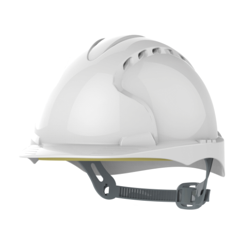 The EVO3 Safety Helmet combines a robust HDPE shell with a comfortable 6-point textile harness, providing all-day protection across various environments. The Revolution Wheel Ratchet system enables effortless adjustment, ensuring a secure and precise fit for different head sizes. The Chamlon sweatband, featuring an Egyptian cotton core, offers exceptional sweat absorption, maintaining comfort during extended use.